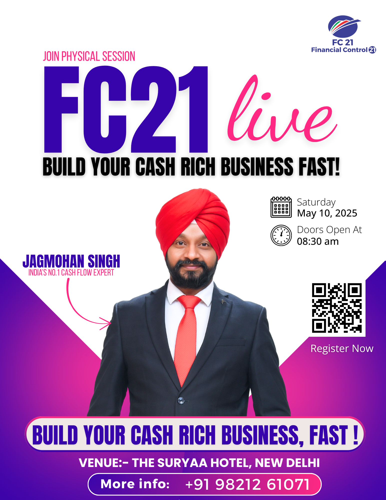 Jagmohan Singh is the host of the prestigious Cash Flow Summit 2026 (Stadium Event, New Delhi), the architect of the Cash Flow Revolution World Tour, and author of the bestselling books Financial Freedom with Financial Control and Cash Flow Mastery. He has been awarded globally in London, Dubai, and India, and is a keynote speaker for top business associations across the country. Guided by Sikh values of Sewa, Bhakti and Truth, his mission is to create a financially strong and cash-confident India.